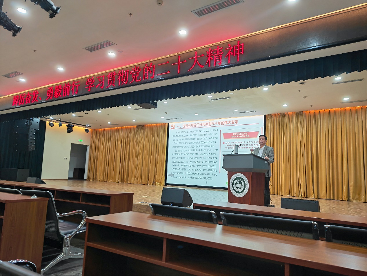 安道彩书记首先向大家介绍了党的二十大报告的主要内容,重点讲解了过去十年党和国家取得的历史性成就、开辟马克思主义中国化时代化新境界、新时代新征程中国共产党的使命任务、新理念新思想新战略,并就党的二十大报告提出的重要论述和习近平总书记参加广西代表团讨论、率领党的二十届中央政治局常委同中外记者见面会时的重要讲话精神进行阐释。
