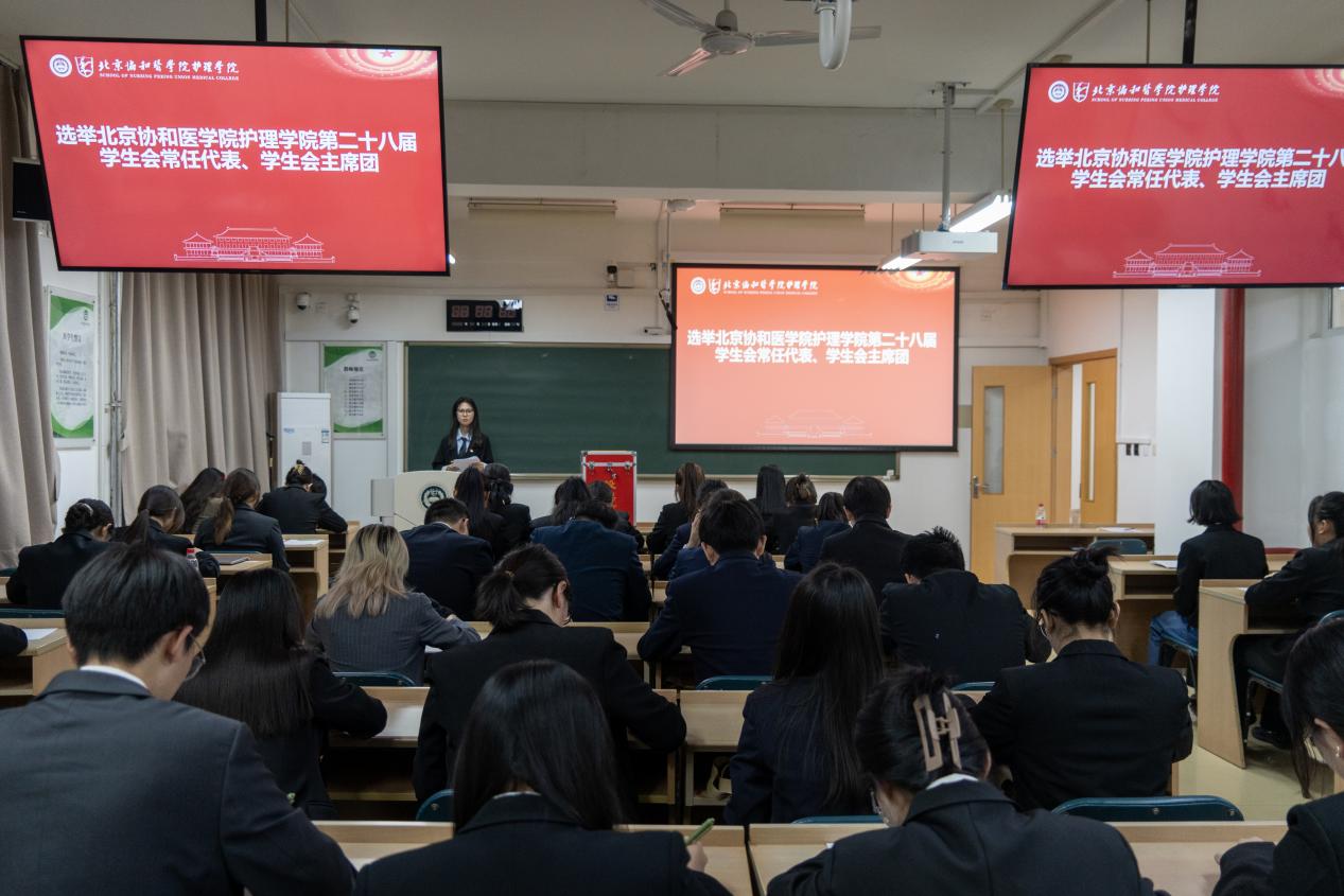 十六点三十分召开全体会议,审议并通过《mk体育平台第二十八次学生代表大会选举办法(草案)》、常任代表和主席团候选人建议名单等,表决通过总监票人与监票人名单,并进行大会选举,选举产生第28届学生会8名学生会常任代表及3名主席团成员。