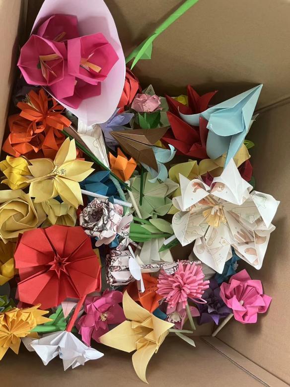 活动结束后,同学们按时上交纸花,并分享折纸过程照和成品照。最终,经负责人筛选评定,共有121朵纸花入选。它们被送往国家心理健康和精神卫生防治中心,将在世界精神卫生日宣传活动中发放给参与活动的儿童及其家长,飘向远方,传递希望。