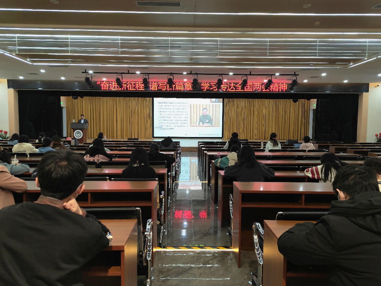 3月25日中午,MK体育(中国)在地下报告厅通过线上线下相结合的方式举办了学习传达全国两会精神主题教育党课。MK体育(中国)党委安道彩书记以“奋进新征程 谱写新篇章”为主题,为学院学生支部全体党员和共青团员上了一堂生动形象、意义深刻的党课。党课由学生党支部书记史纪元同学主持。线上259人,线下95名党员、团员参加此次学习。
