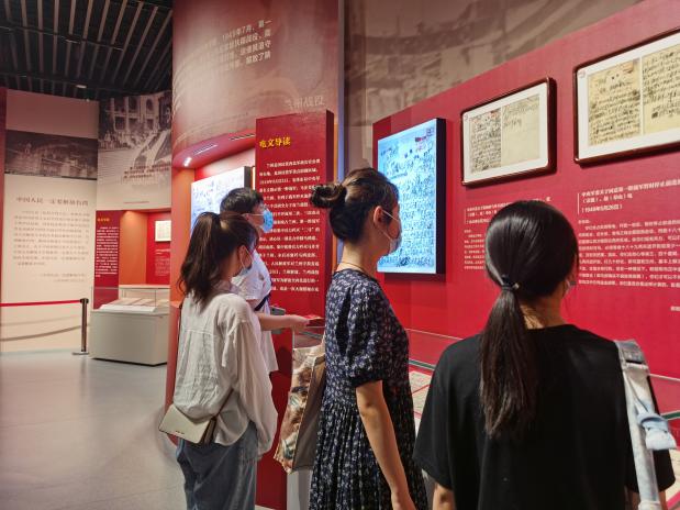 随后,团干部们进入香山纪念馆内进行参观。本次展览共分为两大板块:一层《红色电波中的领袖风范》主题展览和二层《为新中国奠基——中共中央在香山》基本陈列展。一层主题展览中陈列的202封电报,再现了中共中央在香山“为新中国奠基”的伟大历程,使团干部们直观地感受到了党为国家富强、民族复兴的伟大事业而不断探索、努力的艰辛历程;二层基本陈列展随着“进京‘赶考’”“进驻香山”“继续指挥解放全中国”“新中国筹建”“不忘初心、牢记使命、永远奋斗”的时间线索而推进,呈现了香山时期党筚路蓝缕的发展历程。各班团干部认真聆听讲解,仔细观察史料,追寻党的光辉历史,坚定理想信念。
