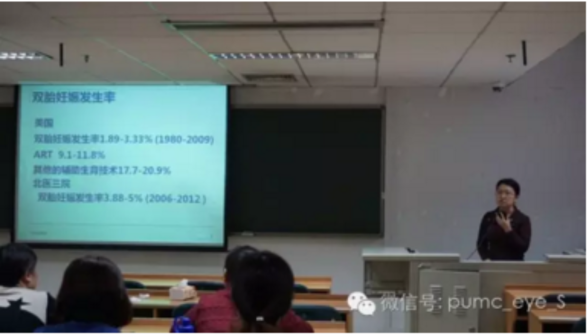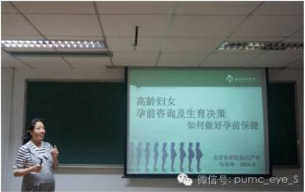 图为协和高龄孕妇马良坤医生在“现身说法”
