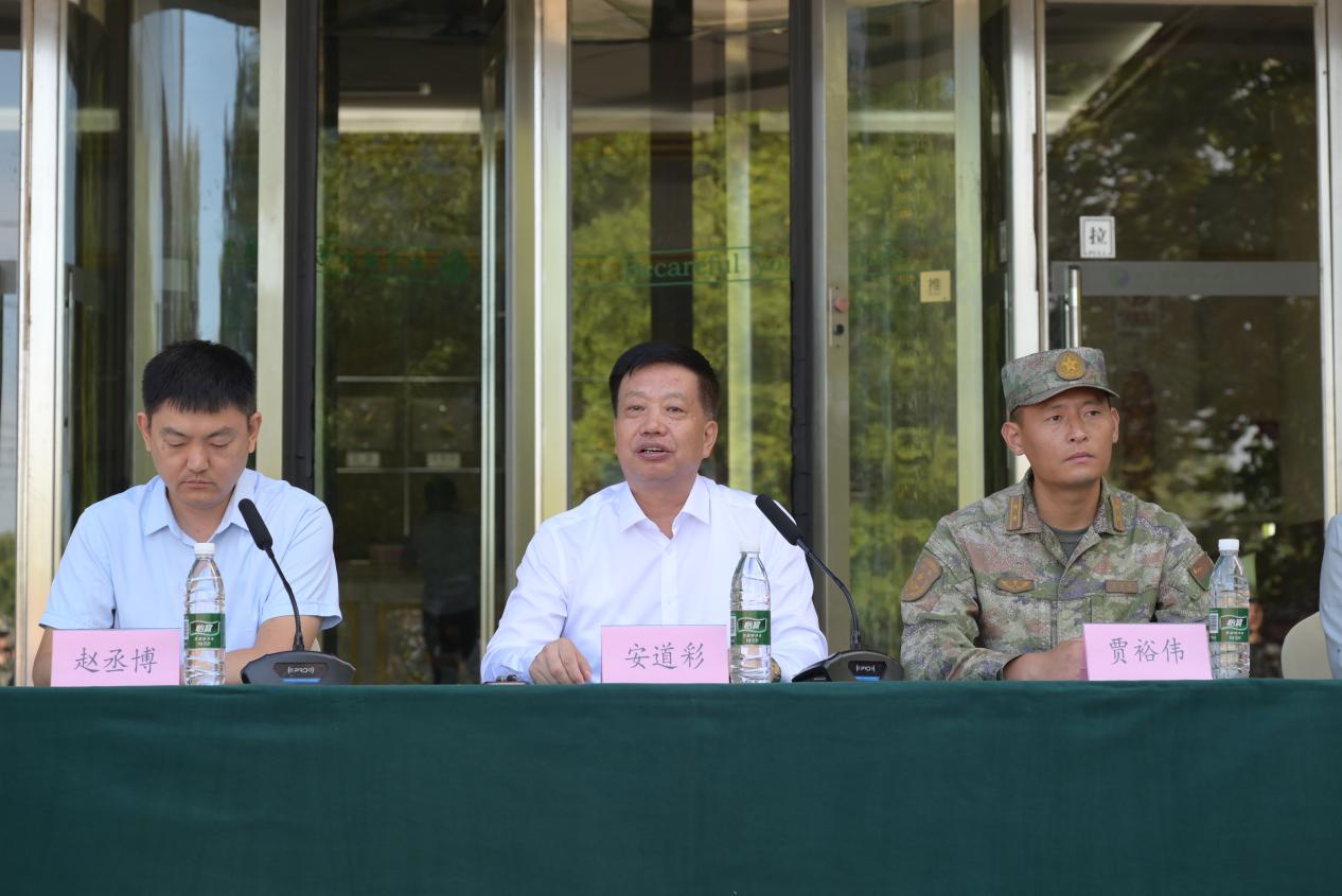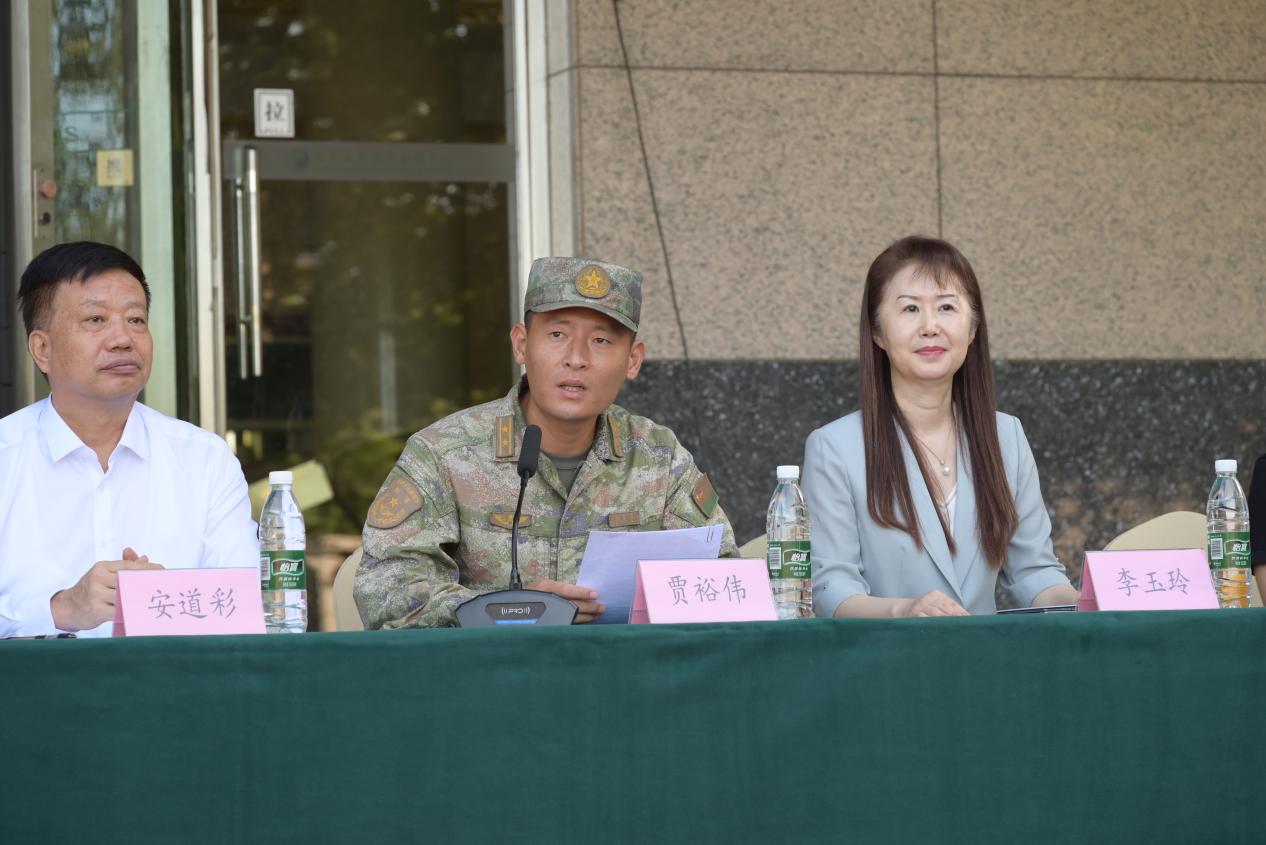 北京卫戍区66477部队副部队长贾裕伟讲话指出,同学们要牢记没有强大的国防和人民军队做后盾,就没有国泰民安,希望同学们把军训成果转化为努力学习、刻苦钻研的强大精神动力,让青春年华在未来的征途中放射出灿烂夺目的光彩。