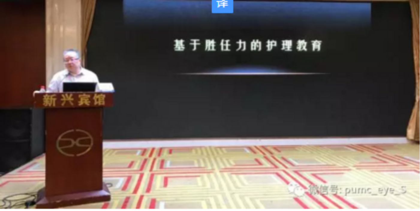 图为管远志教授进行《基于胜任力的护理教育》讲授