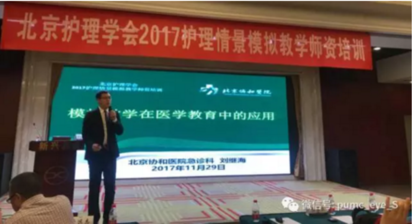 图为刘继海副主任医师进行《模拟教学在医学教育中的应用》讲授