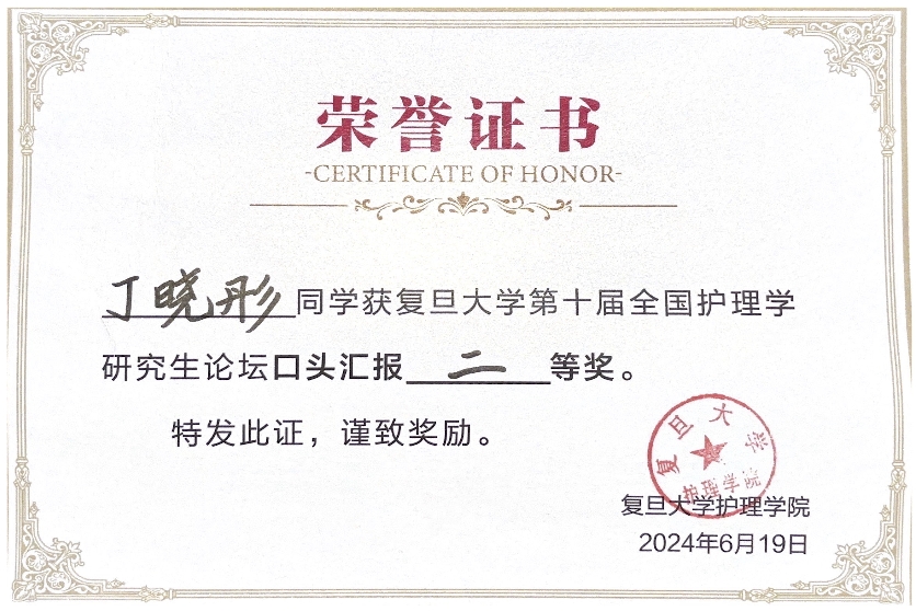 经过专家点评、现场打分和遴选环节,MK体育(中国)陈红爽同学的毕业论文《终末期肾病透析患者衰弱风险预测模型的构建》口头汇报获得一等奖,丁晓彤同学的毕业论文《乳腺癌化疗患者认知功能的调控机制及支持性干预方案的构建研究》口头汇报获得二等奖。