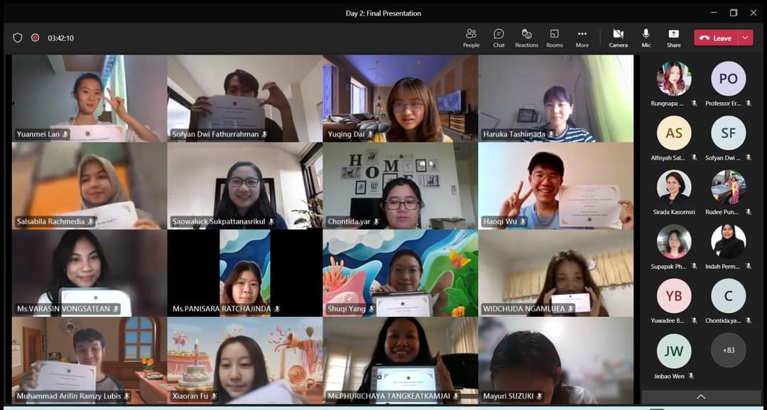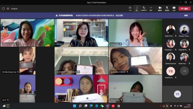 来自泰国的学生们非常有着东道主的热情,首当其冲分享起自己引以为傲的文化和爱好。这首先就让我体会到了一些细微的文化差异。我本人,包括我所在的小组的中国学生,甚至我身边大部分的中国学生,平日里上课会优先选择单纯地聆听,有疑问也倾向于通过打字的方式询问老师。这一方面是因为我们尊重主导发言的教师和其他同学,另一方面则是因为我们担忧冒犯别人而不愿主动发言。但经过本组指导老师的鼓励,我们主动进行自我介绍,组内的气氛也变得越来越融洽。有时候虽然不能听懂老师所讲述的内容,但看到老师温暖的笑容,同学们亲切的异国话语,就感觉原来大家似乎是可以没有语言障碍的,通过人的表情来配合语言来沟通,这是胜过一切书面或纯粹语言交流的!尽管只是第一天,我们互相分享了少部分的文化和专业知识,这样也为后续深入交流打下了良好的基础。