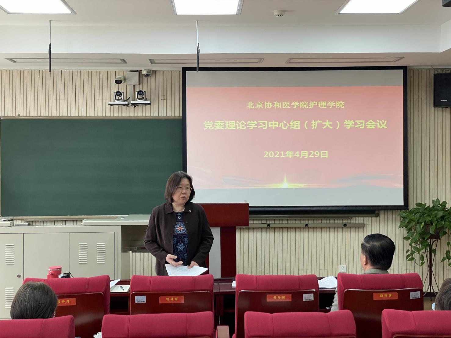 李峥院长随后结合自身经历谈了学习感受,并对学院教师工作提出几点希望。李院长谈到:习总书记指出,美术、艺术、科学、技术相辅相成、相互促进、相得益彰。做为教师应认真思考如何将美学融入校园文化,课堂教学。要将总书记指示精神和自身工作相结合,和护理专业相结合,反思如何构建中国特色、中国风格、中国气派的学科体系、话语体系、专业学位学科方向。高校要不断提高人才培养质量,学院要抓好质量、工程创新工程,培养高质量人才,培养高质量学生。教师应注意提高自身水平,做到自律、自强、自信,成为学生的榜样。希望全体教职工认真学习习总书记本次重要讲话精神,并通过学习提高对护理高等教育和办学的认识。