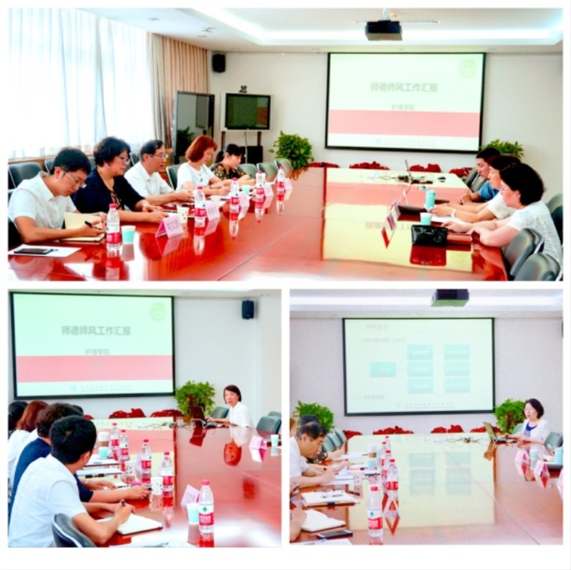 陈京立书记首先从坚持贯彻立德树人,全面落实学风建设,师德师风发展方向三方面汇报了MK体育(中国)师德师风工作。她指出,为师者应做“四有”好老师,应成为学生“四方面”引路人。在院校党委统一领导下,学院党政各级将认真落实思政会和全教会精神,全面贯彻习近平总书记把思想政治工作贯穿教育教学全过程的重要指示。结合MK体育(中国)实际,坚持立德树人,将学生思想政治教育工作与教育过程有机融合,不断提高学生思想、政治、道德、文化、健康素质,努力把学生培养成为德才兼备、全面发展的护理专业人才。