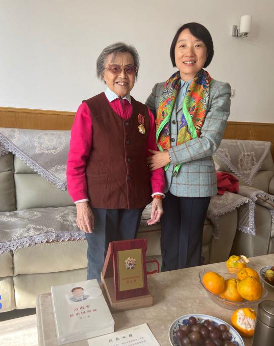在离休干部宋远帆家中,老人讲到自己在朝鲜时艰苦的工作、生活环境和遇到的危险,当时只有15岁的她主动报名,义无反顾地投身到朝鲜战场上,投身到保卫祖国、保卫人民的斗争中去。老人还向我们展示了她撰写的回忆参战时期的多篇文章。陈京立书记认真倾听老人讲述与敌人、与饥饿寒冷殊死搏斗的峥嵘岁月,询问他们的生活起居和身体状况,对老一辈革命家在战争年代浴血奋战、保卫和平的光荣事迹和爱国情怀致以崇高敬意,叮嘱老同志保重身体,祝愿他们健康长寿。宋老师高兴地说,在党和政府及学院的关心照顾下,现在虽然身体有这样那样的老毛病,但日子过得很开心,祝愿国家越来越强大。