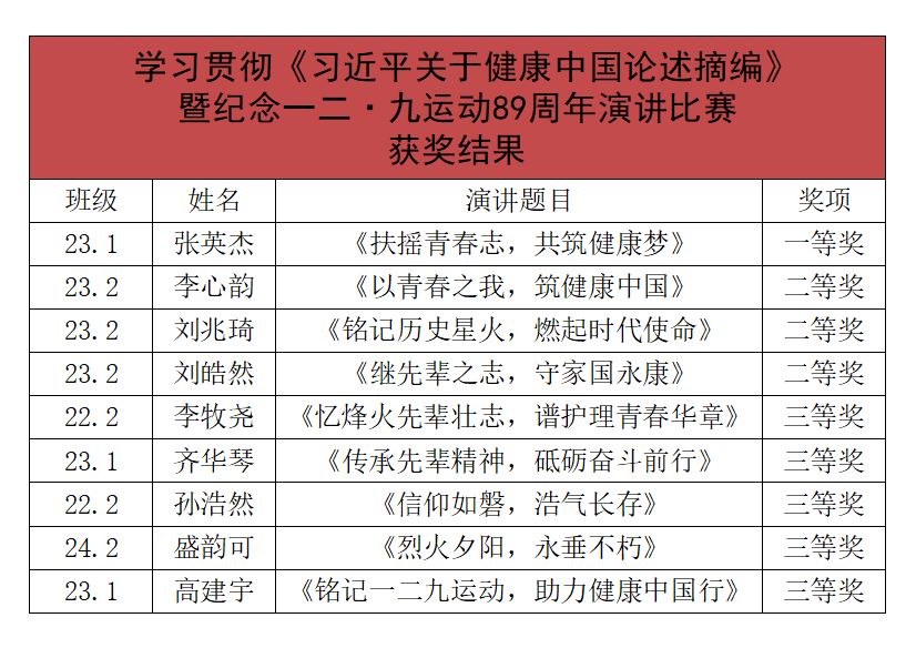 本次比赛不仅是一次对“一二·九”运动精神的传承,也是对《习近平关于健康中国论述摘编》学习成果的一次集中展示,不仅展现出新时代协和青年对历史的思考、对现实的关注,更激励每一位同学在新征程中勇担使命、砥砺前行。愿协和学子铭记历史、传承精神,积极投身健康中国建设,为实现中华民族伟大复兴的中国梦贡献青春力量。
