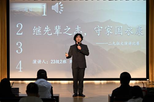 伴随着主持人庄重而激昂的开场,比赛正式拉开帷幕。9位入围决赛的选手依次登台,他们以饱满的热情和深刻的见解,阐述了对“一二·九”运动精神的理解和感悟,将健康中国的理念巧妙地融入到自己的演讲中。选手们从多元视角切入,深刻展现了他们对于历史事件和国家战略的深邃思考。选手们或以历史为鉴,颂扬革命先烈的英勇事迹;或以现实为基,探讨健康中国战略的实施路径与青年责任;或以未来为向,展望民族复兴的壮丽图景。