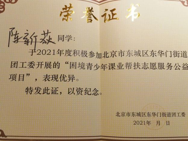 毕可嘉同学是MK体育(中国)2021级本科1班的学生。自踏入大学校园的那一刻起,便立志成为新时代一名学业优异、素质全面的大学生。在2023年,她积极投身于课业辅导、健康宣传、医疗保健和环境保护等多方面的志愿服务工作,累计服务155小时。特别是在东华门街道团工委组织的“课业帮扶困境青少年”项目中,毕可嘉同学与团队携手,为遇到学业挑战的青少年提供可靠支持,帮助他们克服困难。如其所言,这些志愿服务经历不仅能加深对社会的全面认知,在提升沟通技巧和团队协作能力等方面也颇有助益,还为她未来的职业生涯奠定坚实的基础。