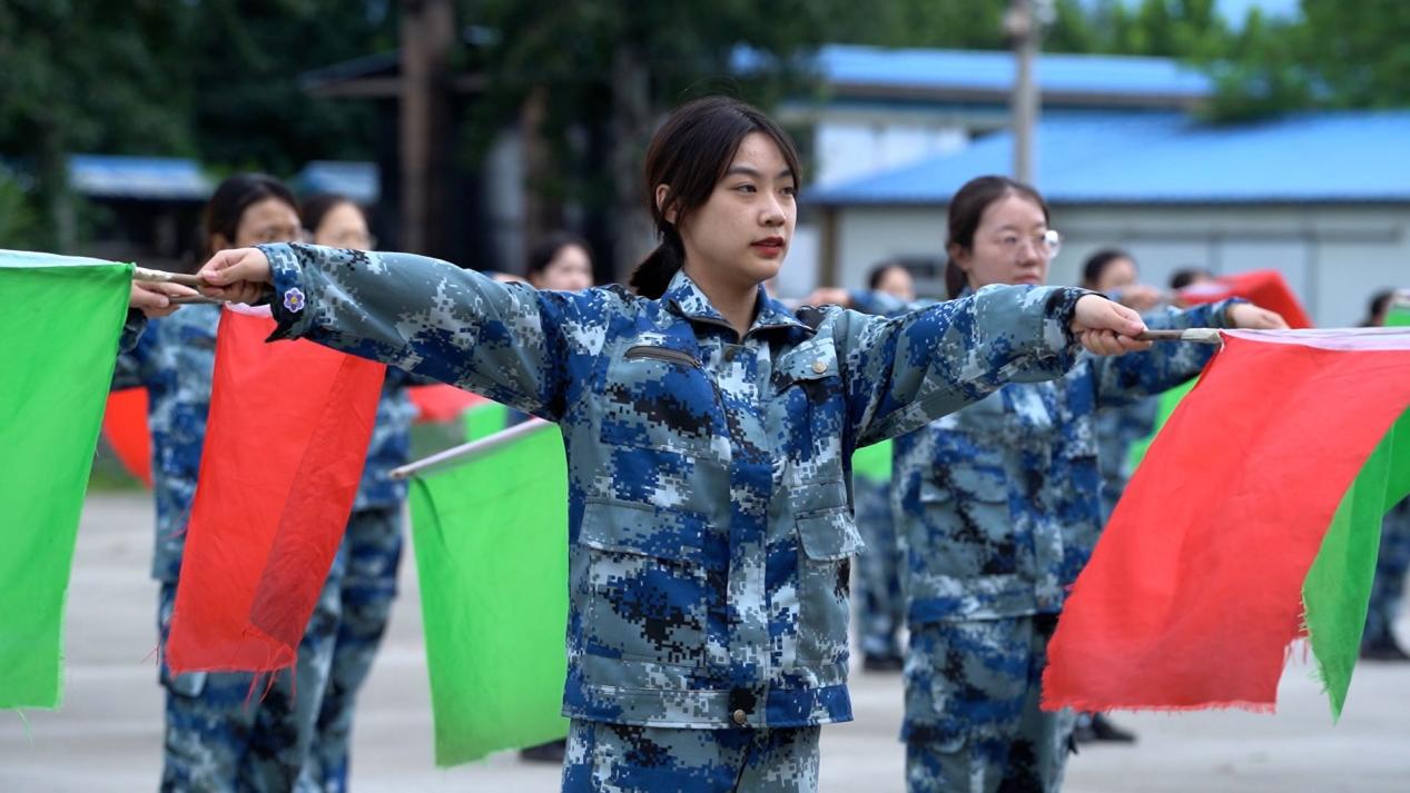 训练场上,五星红旗冉冉升起,同学们整齐列队,闭营式在齐声高唱国歌声中拉开帷幕,分列式、擒敌拳、军体拳、旗语等训练课目进行展示,同学们口号嘹亮、动作整齐,以饱满的精神状态接受检阅,展现了全体参训学生顽强拼搏、团结向上的昂扬斗志!