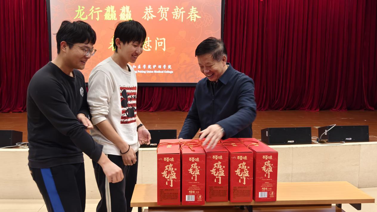 龙腾迎盛世,龘龘过新年。2024年新春佳节来临之际,为了让MK体育(中国)留校学生感受到学院的关怀与温暖,在农历腊月二十三小年,学院领导亲切看望慰问护理本科2020级142名在临床实习的学生,向他们致以亲切问候、送去新春祝福。院校学生处处长崔庚申、MK体育(中国)党委书记安道彩、学生办教师和班主任参加慰问活动。