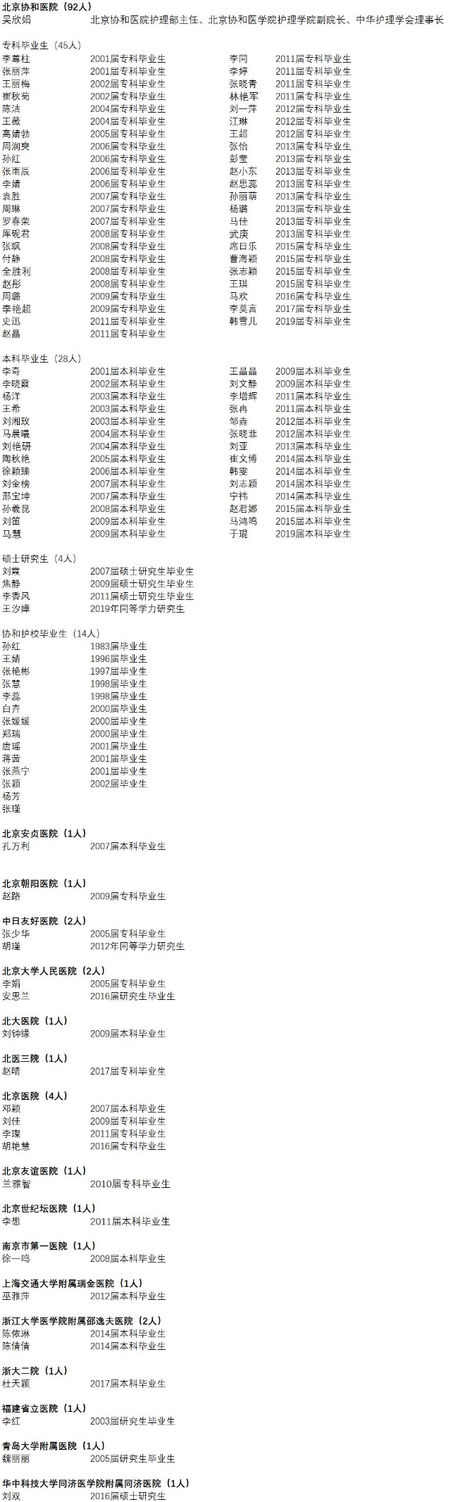 附:北京协和医学院护理专业校友援鄂医疗队员名单(不完全统计,排名不分先后)