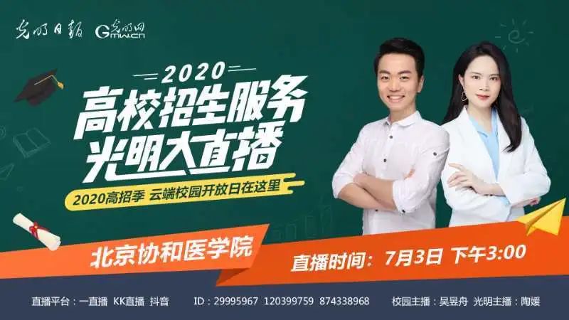 7月3日下午,光明日报全媒体团队走进北京协和医学院,拉开了“2020高校招生服务光明大直播”的帷幕。在前三届活动的基础上,今年的直播活动进一步丰富产品形式、聚拢信息资源、延伸扩大影响,力求通过融媒体传播手段及时宣传高考招生制度改革最新成果,搭建权威的招生就业指导信息数据库和服务平台,展现中国高等教育在双一流建设进程中的新进展,为考生和家长提供多方位的精准教育信息服务。