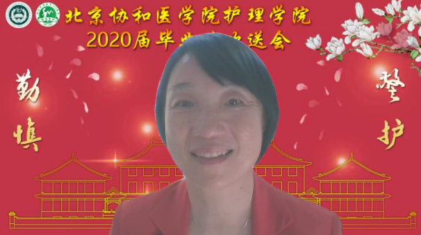 学院党委陈京立书记简略回顾了协和护理高等教育的百年历程,结合新冠肺炎疫情的背景,不仅自豪于119名协和护理人白衣擐甲,冲锋一线,还充分肯定了2020届毕业生在疫情之下的表现——不畏困难顺利毕业,还努力为母校、为社会防控战“疫”贡献自己的青春力量。她向毕业生寄予五个“厚”的希望,即“厚德、厚泽、厚望、厚道、厚爱”。她希望毕业生们执业笃行、锤炼意志,甘于奉献、不负韶华。
