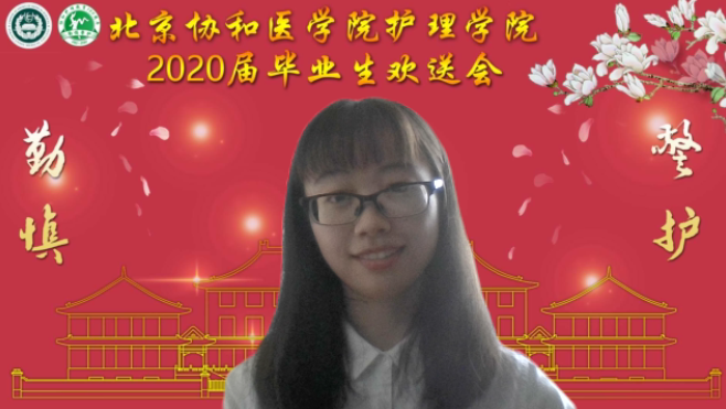 16级本科班鲁乔丹同学代表全体毕业生发表了毕业感言。她回忆了四年来在校期间学习和生活的点滴,表达了对学院、对老师的感激与不舍。她说作为新时代协和人,从学院的熏陶中明白了护理的涵义,会将这份坚守和传承带去患者身边。