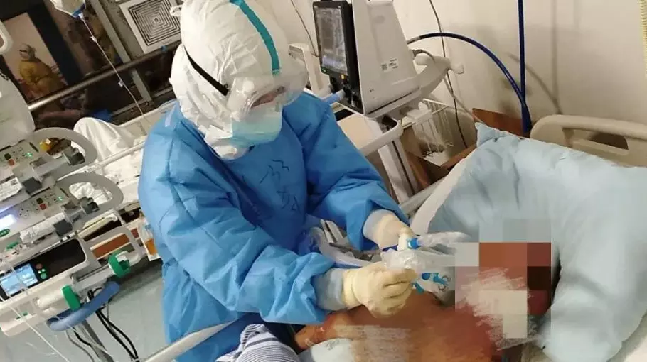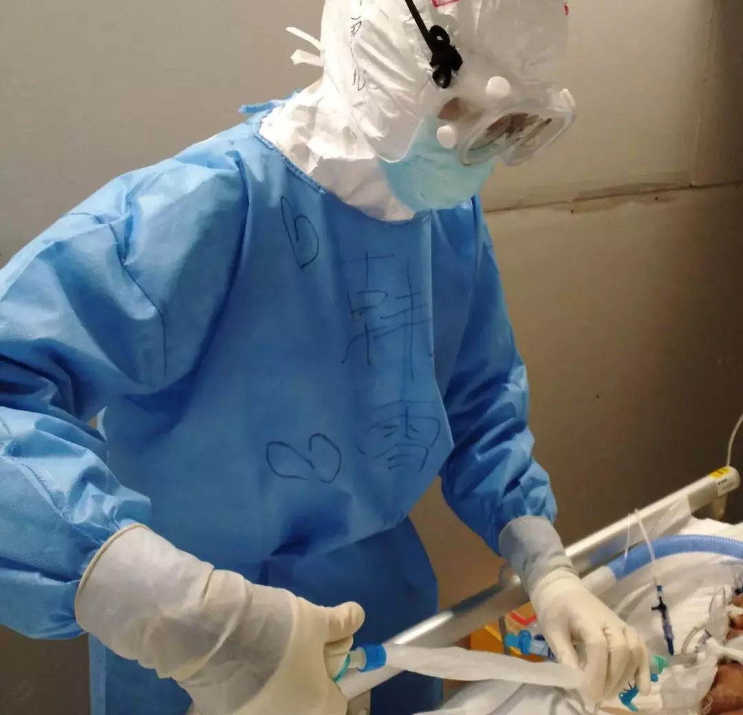 韩雪儿为新冠患者吸痰